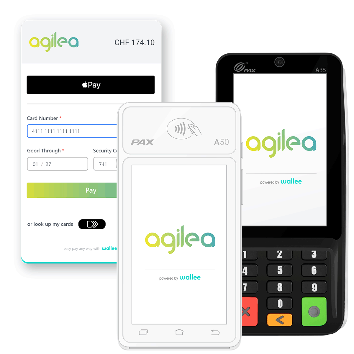 Con agilea, il software cloud per le palestre, potete gestire l'intero studio con un semplice clic, dall'amministrazione dei soci alla gestione degli utenti, al check-in e persino alla fatturazione. wallee è perfettamente integrato in agilea: Questo vi offre pagamenti moderni su tutti i canali. Offrite ai vostri soci un'ampia gamma di metodi di pagamento, una semplice fatturazione mensile e opzioni di pagamento flessibili online e in loco.
